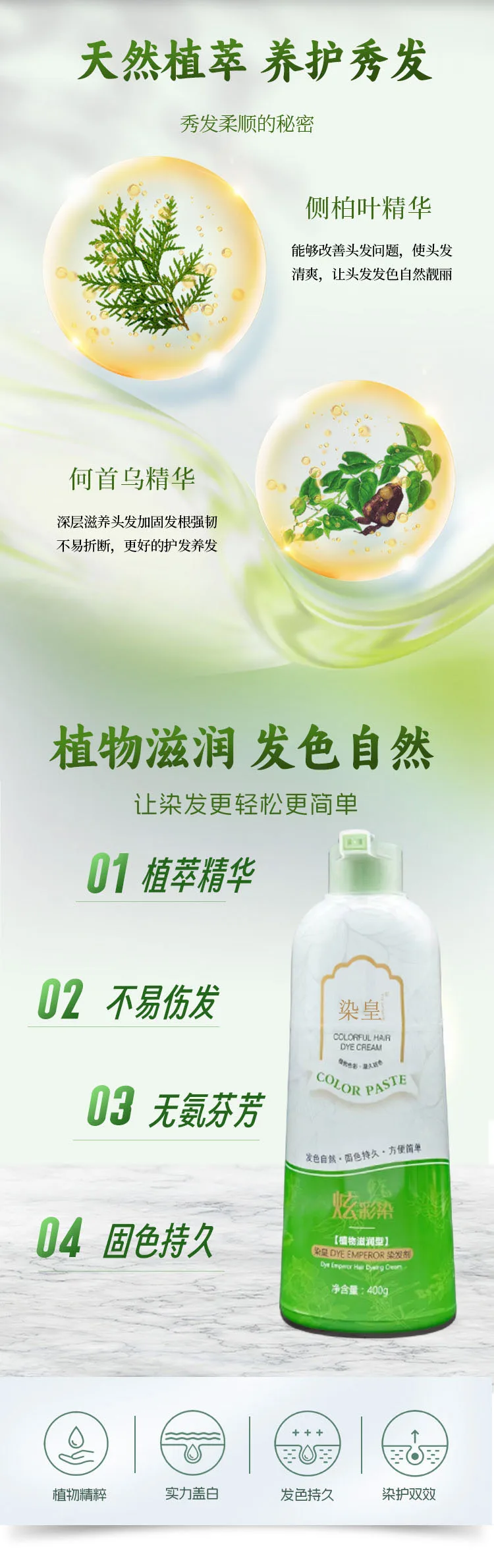Característica: Esencia vegetal natural Cuidado suave para teñir el cabello Fragancia no penetrante